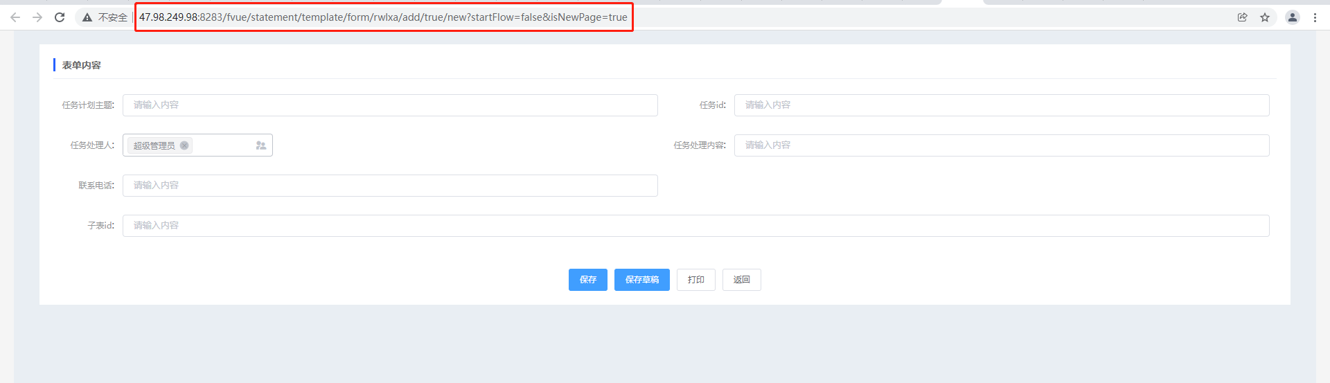 1.任务类型建模创建表单后,需要创建表单列表并添加新增按钮,点开新增按钮,截取新增页面的链接