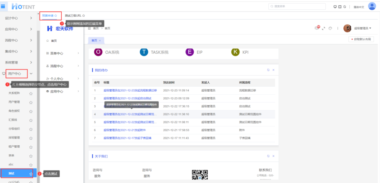 第三步:保存之后需要重新登录,按照父节点的路径找到该表单