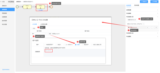 如下图(组织选择器、岗位选择器的设置方式与用户选择器一致):
