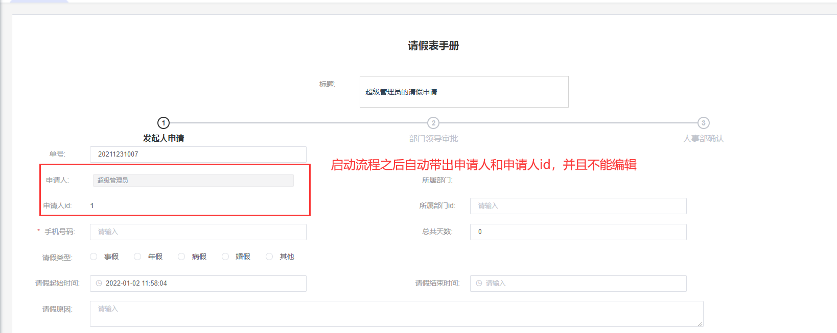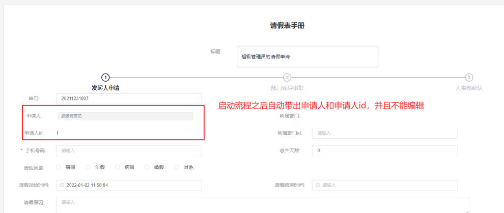 · 场景1:流程启动时需要自动获取当前登录用户的信息,并不可修改
