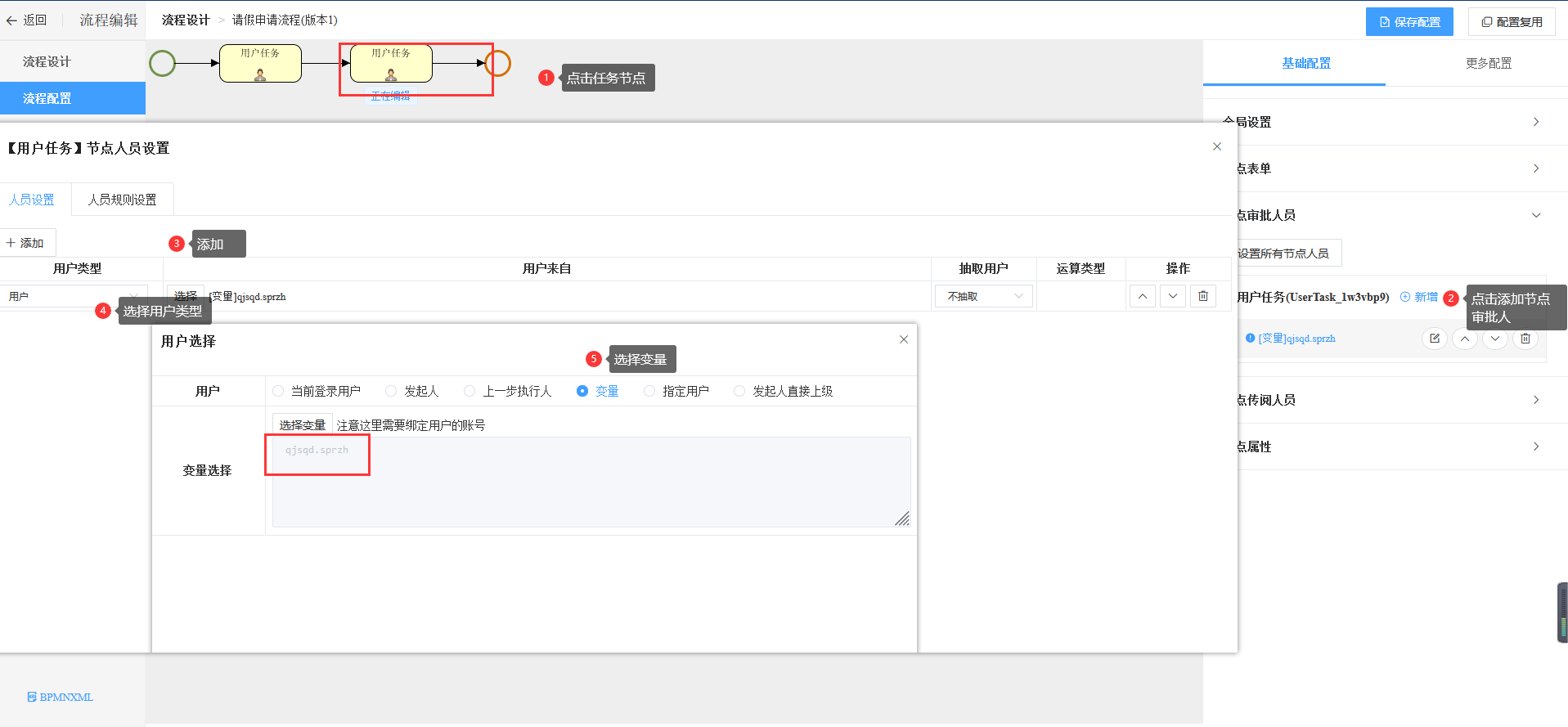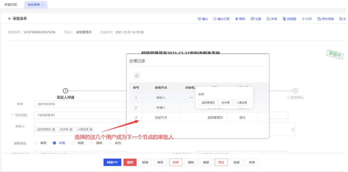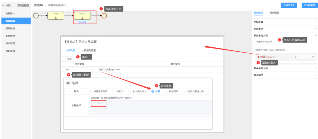 · 场景2:通过在表单中选择用户,作为节点的审批人