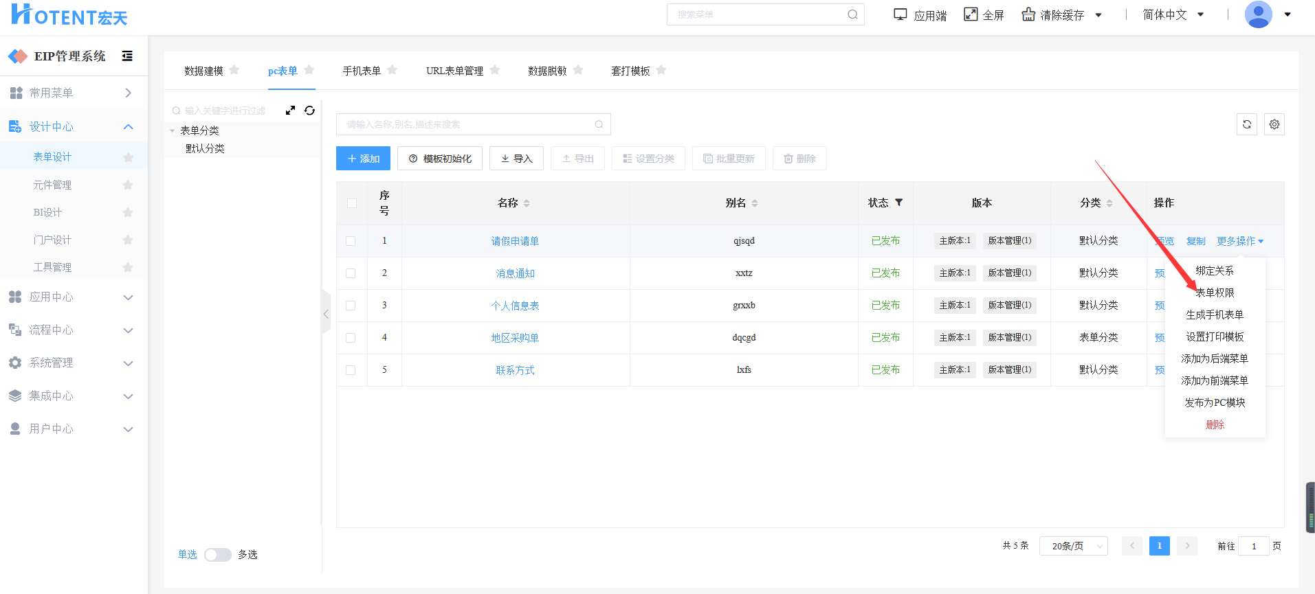 第五步:表单设计完毕后,点击“保存”或“发布新版”