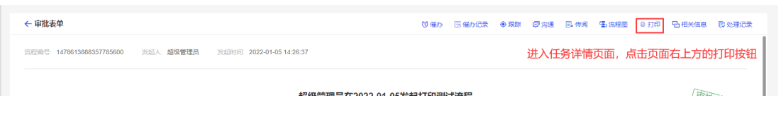进入任务详情页面,点击页面右上方的打印按钮