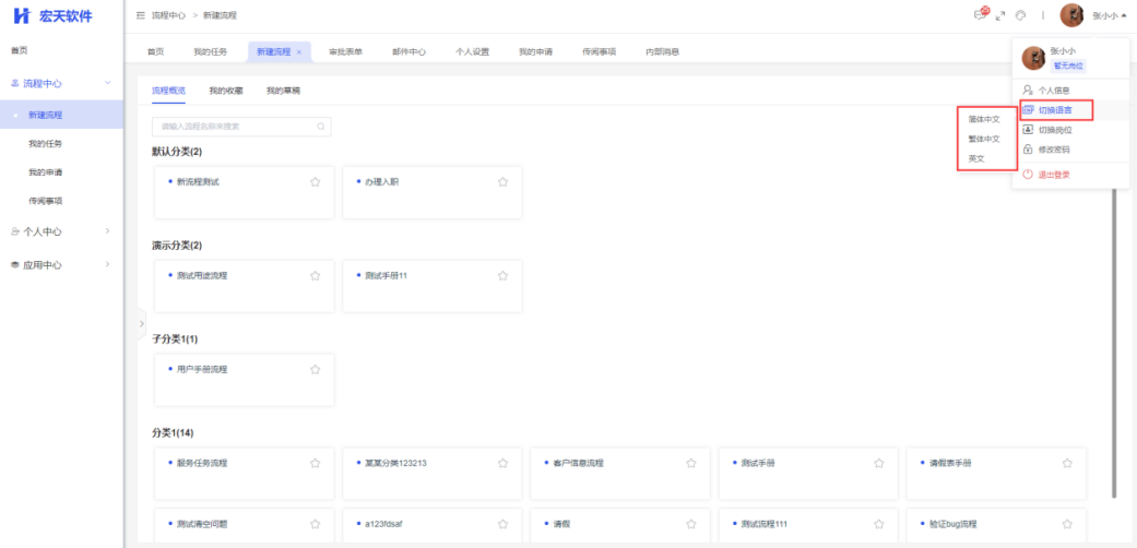 切换语言:切换其他语言(其他语种的添加,请参考【
