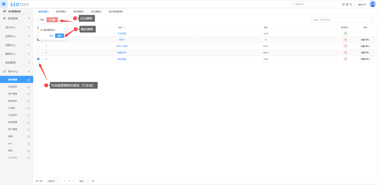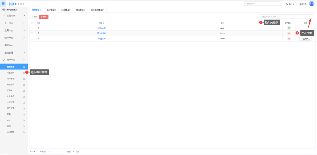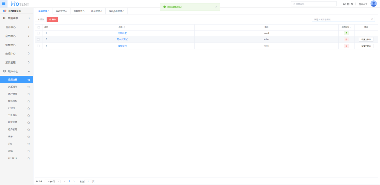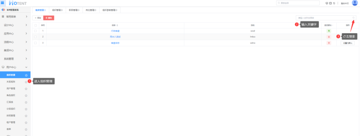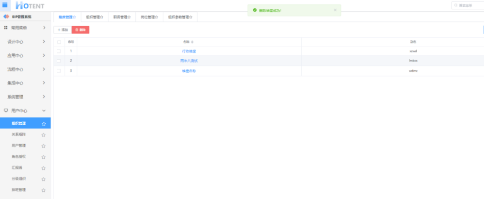 第一步:【用户中心】→【组织管理】→【维度管理】