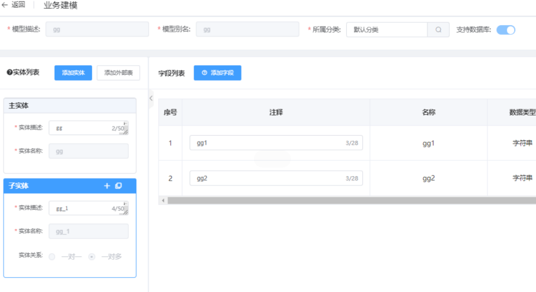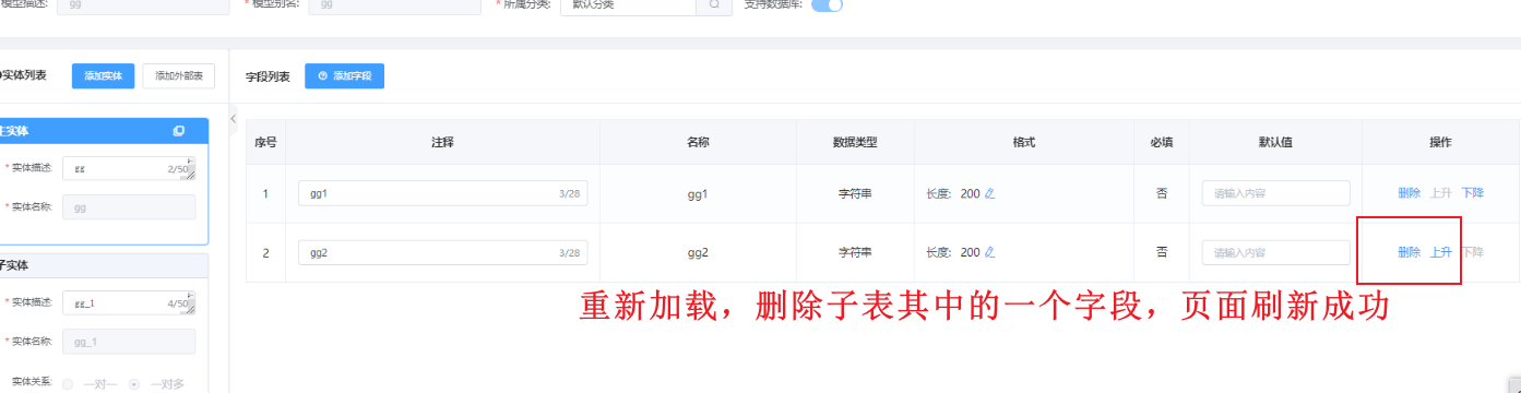 注意:如要对建模中的子表进行彻底删除,请做好数据备份,以免数据丢失