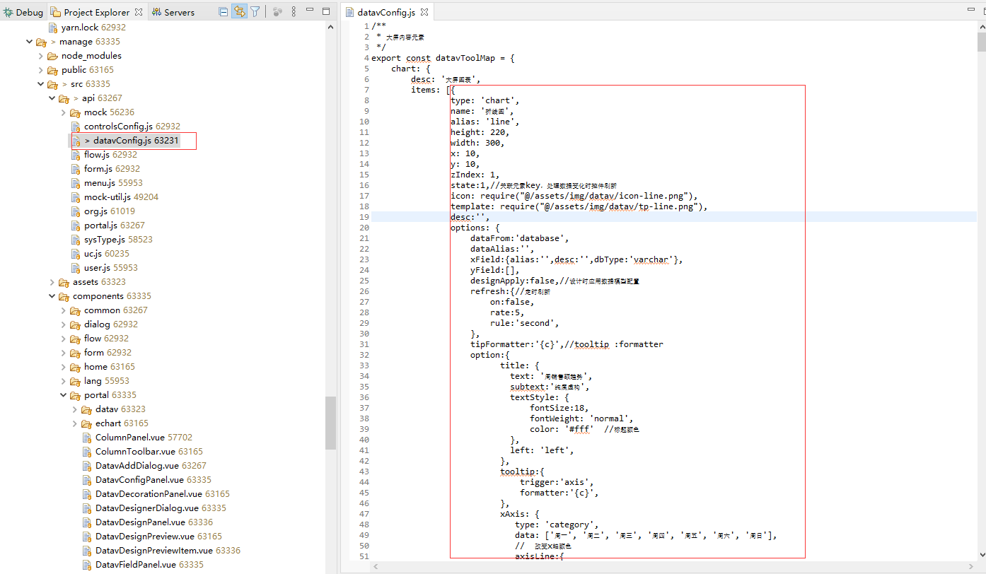 Ø 在datavConfig.js文件的对应位置添加组件模板数据