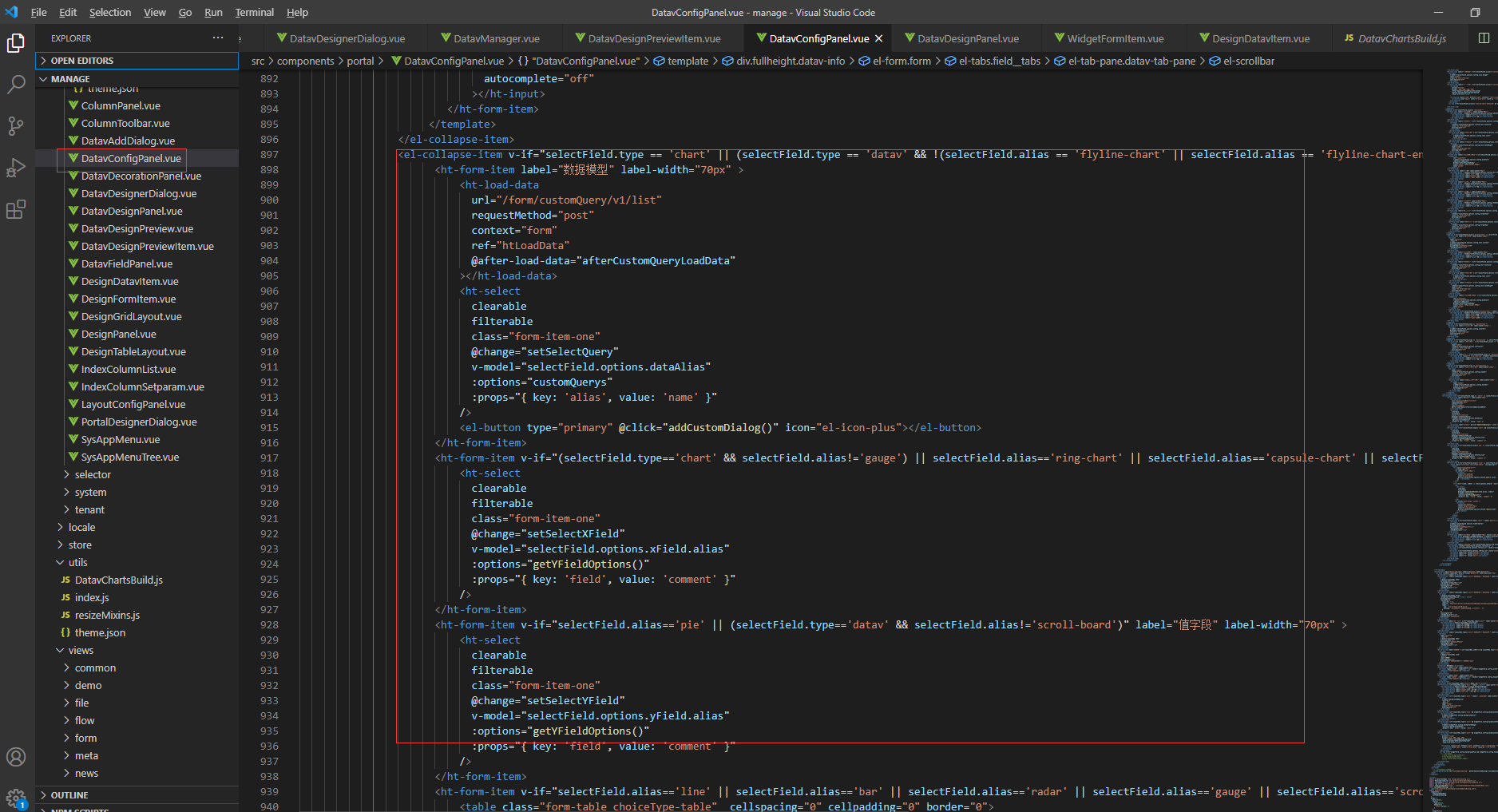 Ø 在DatavConfigPanel.vue文件中添加属性设置代码