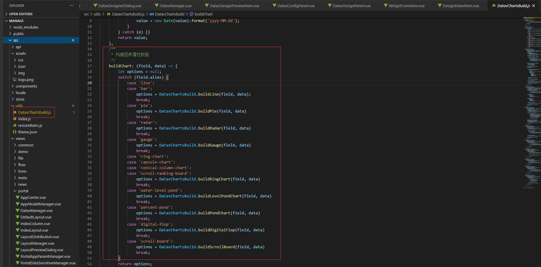 Ø 在DatavChartsBuild.js中添加解析options数据逻辑代码